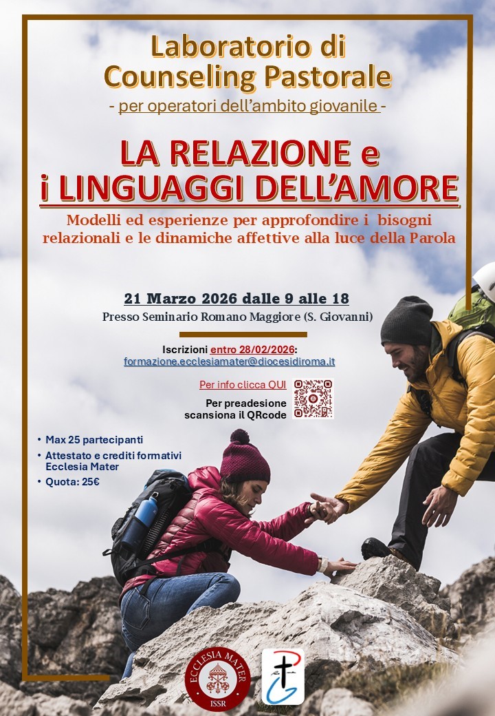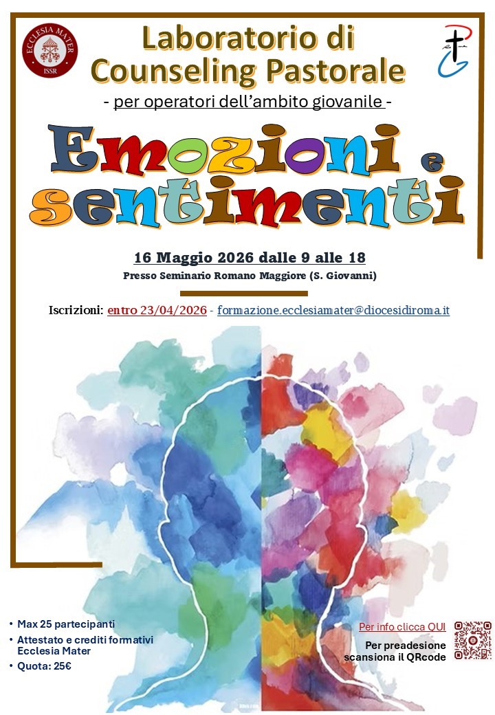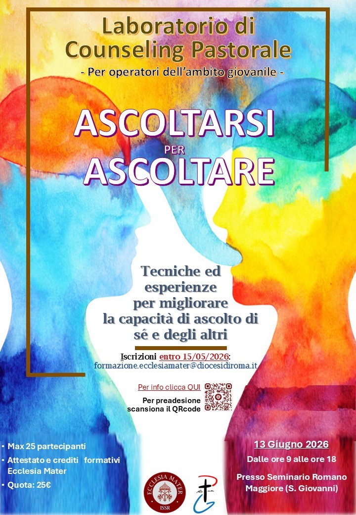 I “Laboratori di counseling pastorale” sono un’iniziativa formativa, promossa in collaborazione con l’Ufficio per la pastorale giovanile della Diocesi e dedicata agli educatori, catechisti e animatori, attuali e futuri, che seguono i giovani nelle parrocchie a vario titolo (Oratori, catechismo, scout, gruppi giovanili, ecc.).